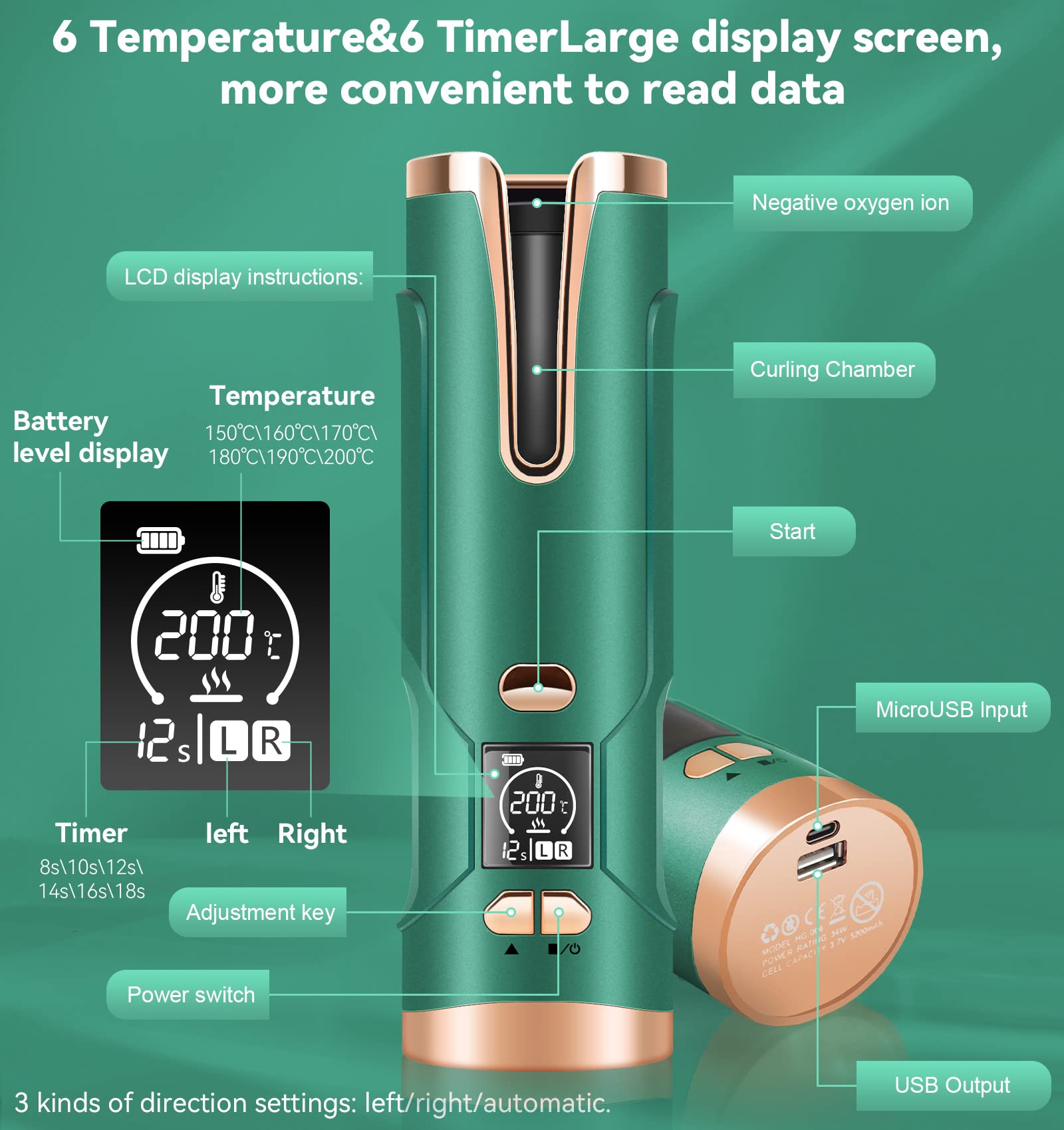 Cordless Hair Curler Automatic Curling Iron Cordless Curling Tongs 5000mah Usb Rechargeable Negative Ion Protection 6 Adjustable Temperature Timer Ptc Ceramic Hair Curling Anti Tangle For All Hair Amazon Co Uk Beauty